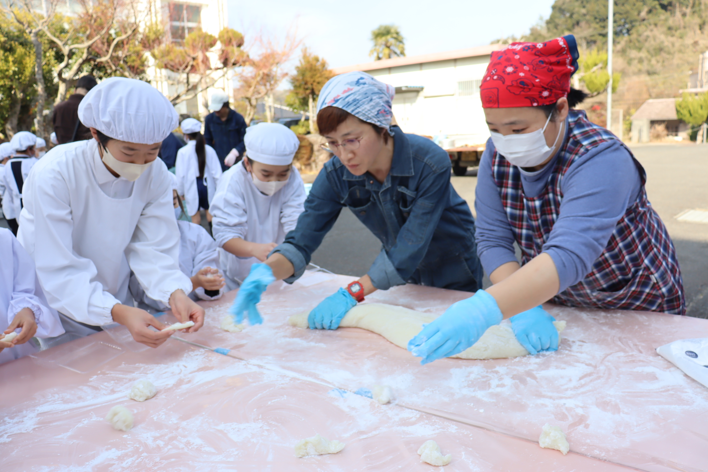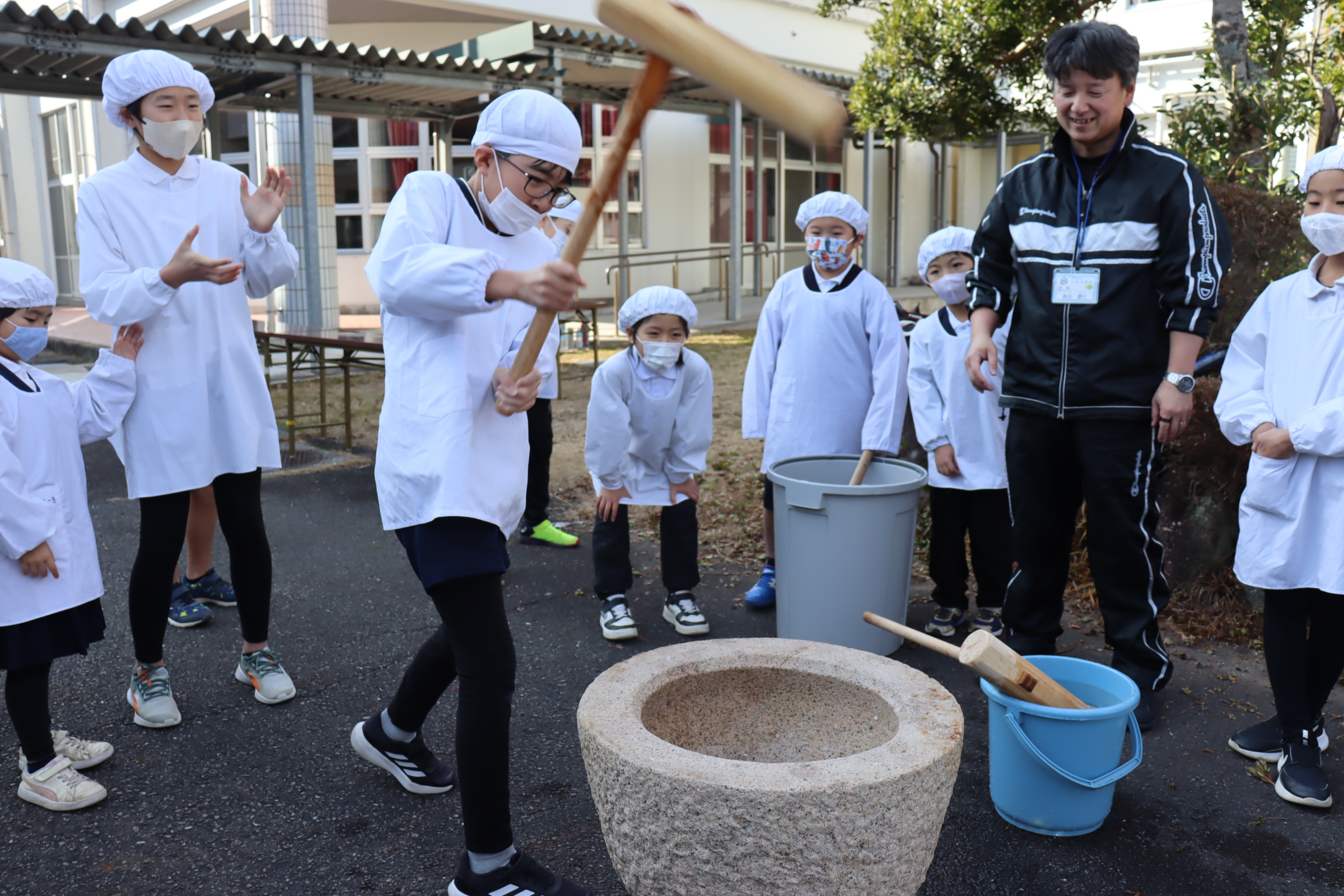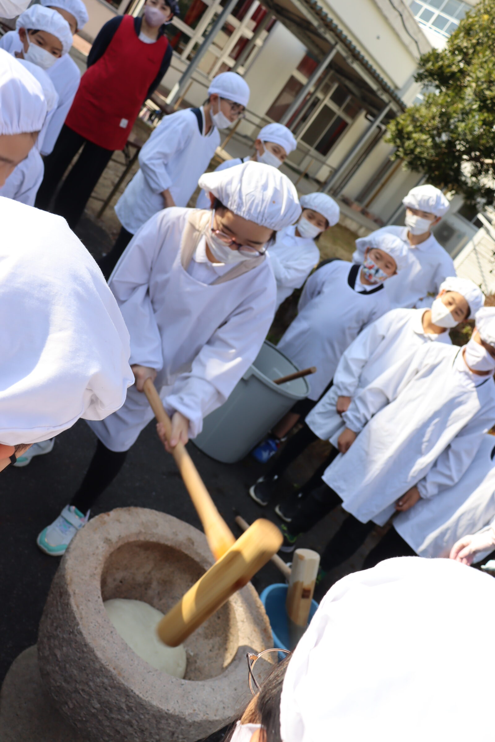 1/16(金)もちつき 2026.01.19 小野小ニュース Tweet この記事のタイトルとURLをコピーする 1/16(金)もちつき 地域の方のご厚意と、保護者の皆様のお力をいただいて、もちつきが実現しました。杵と臼を使ってのもちつきは初めてという児童が多く、はじめは悪戦苦闘していましたが、だんだんに力強くつけるようになりました。ついた餅は、自分たちで丸め持ち帰りました。子どもたちはとにかく楽しかったようで、来年も実施したいと口々に言っていました。収穫に感謝、多くの方が集まったことに感謝、協力できることに感謝、餅ができたことに感謝、笑顔が生まれたことに感謝、このような活動が実施できる、平和に感謝。感謝しきれない一日でした。 Tweet この記事のタイトルとURLをコピーする 1/16(金)防災訓練 前の記事 1/19(月)ふれあい学習(郷土料理作り)中学年 次の記事