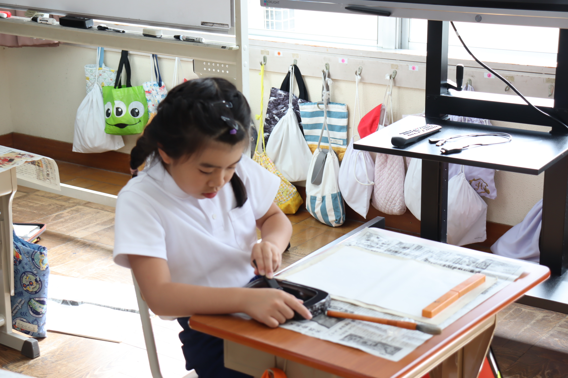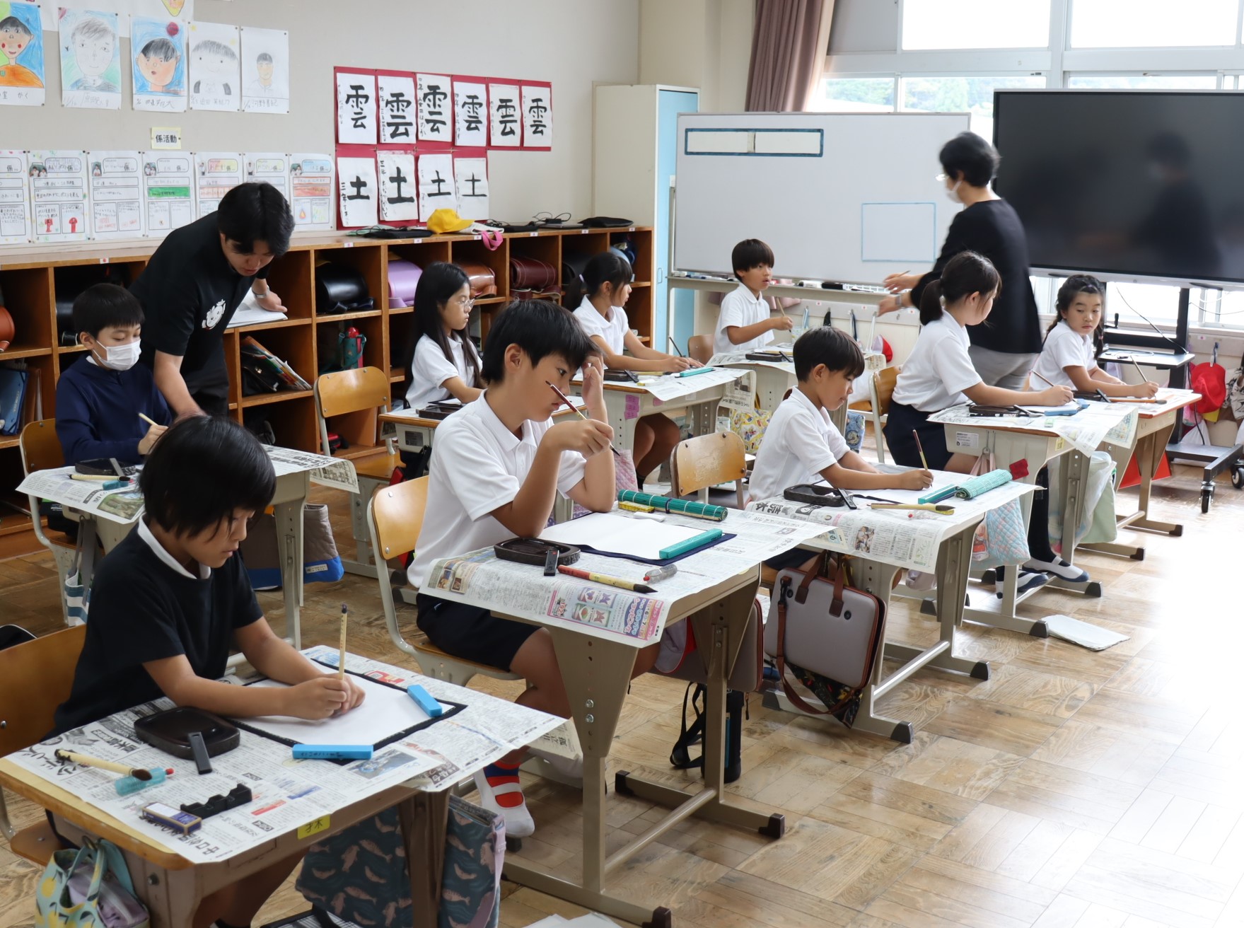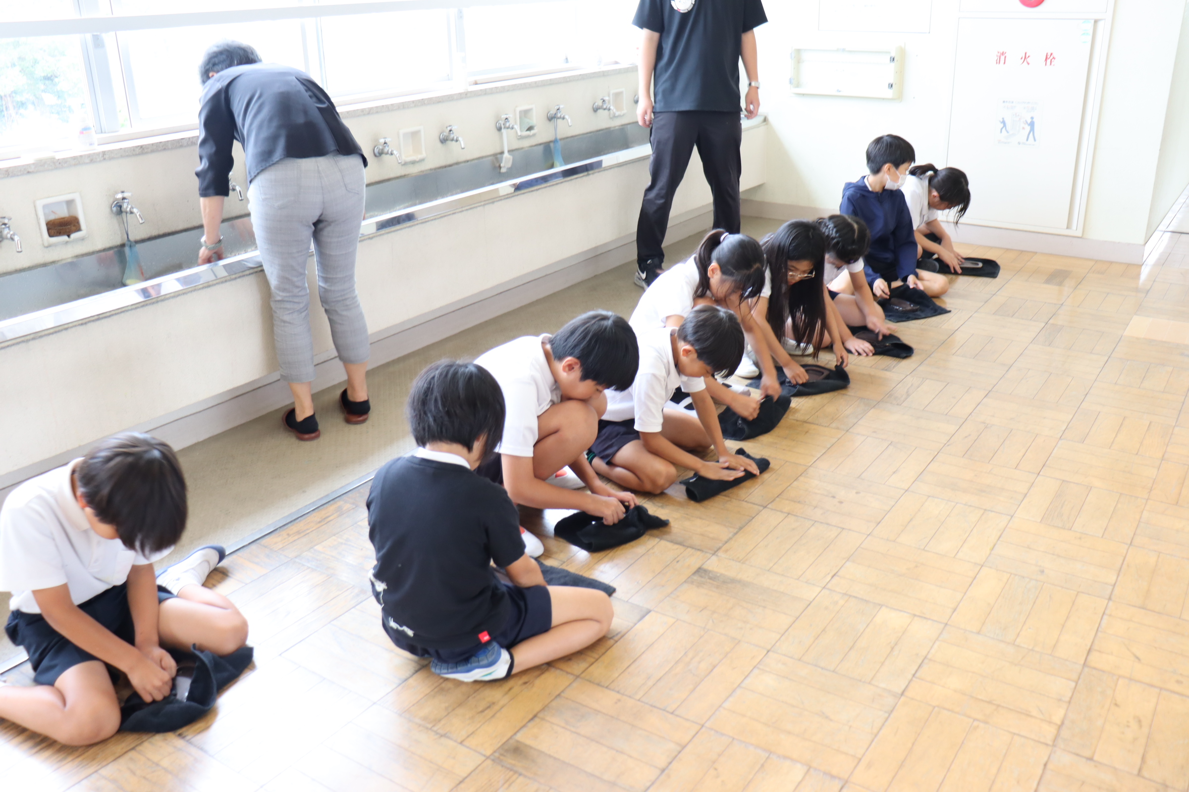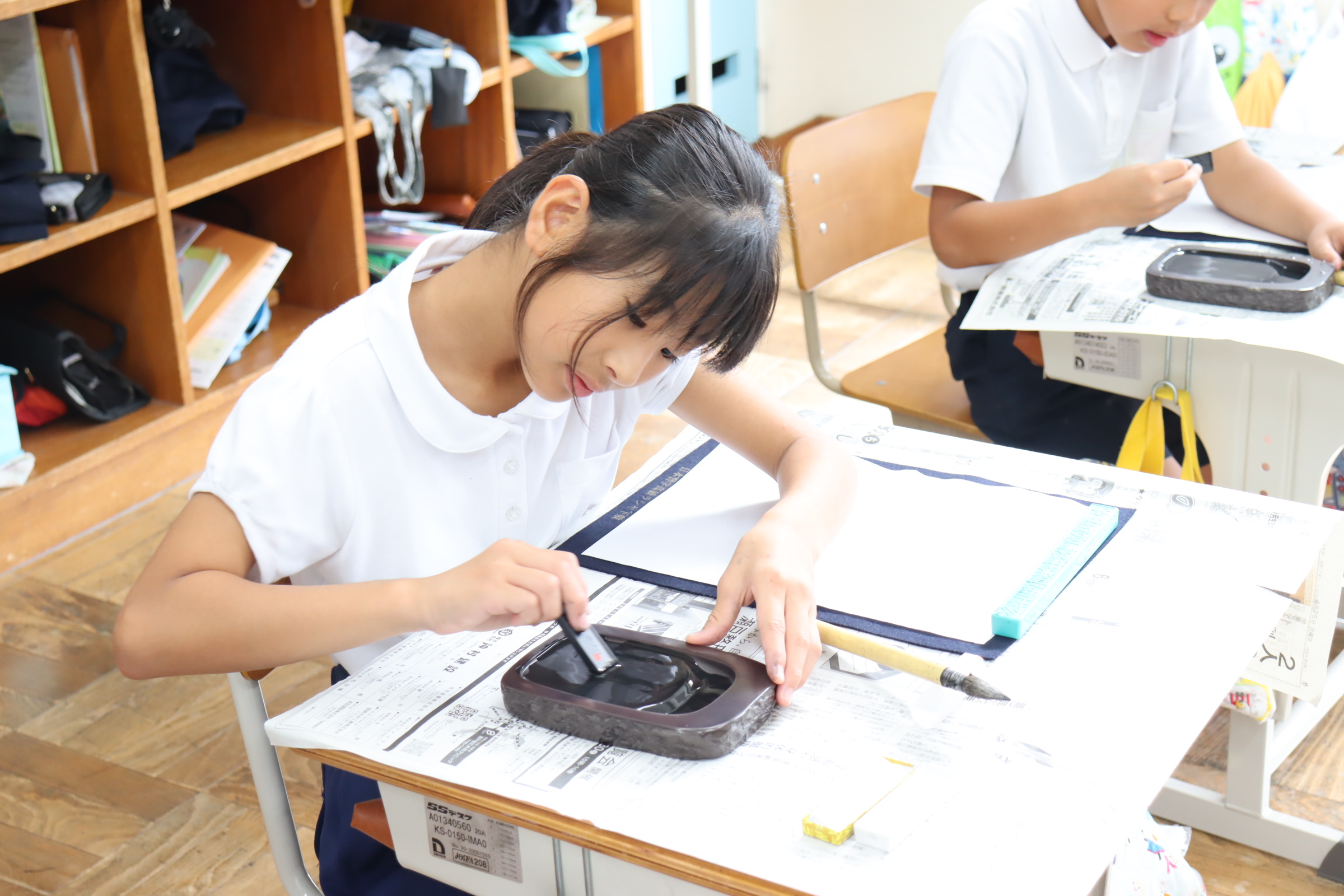 中学年は赤間硯を使っての習字教室を行いました。講師の先生より、赤間硯の制作にかける思いをお聞きして、子どもたちも大切に硯を扱いました。墨のすり方、や片付け方もしっかり学ぶことができました。山口県の誇りをまた一つ学ぶよい機会となりました。