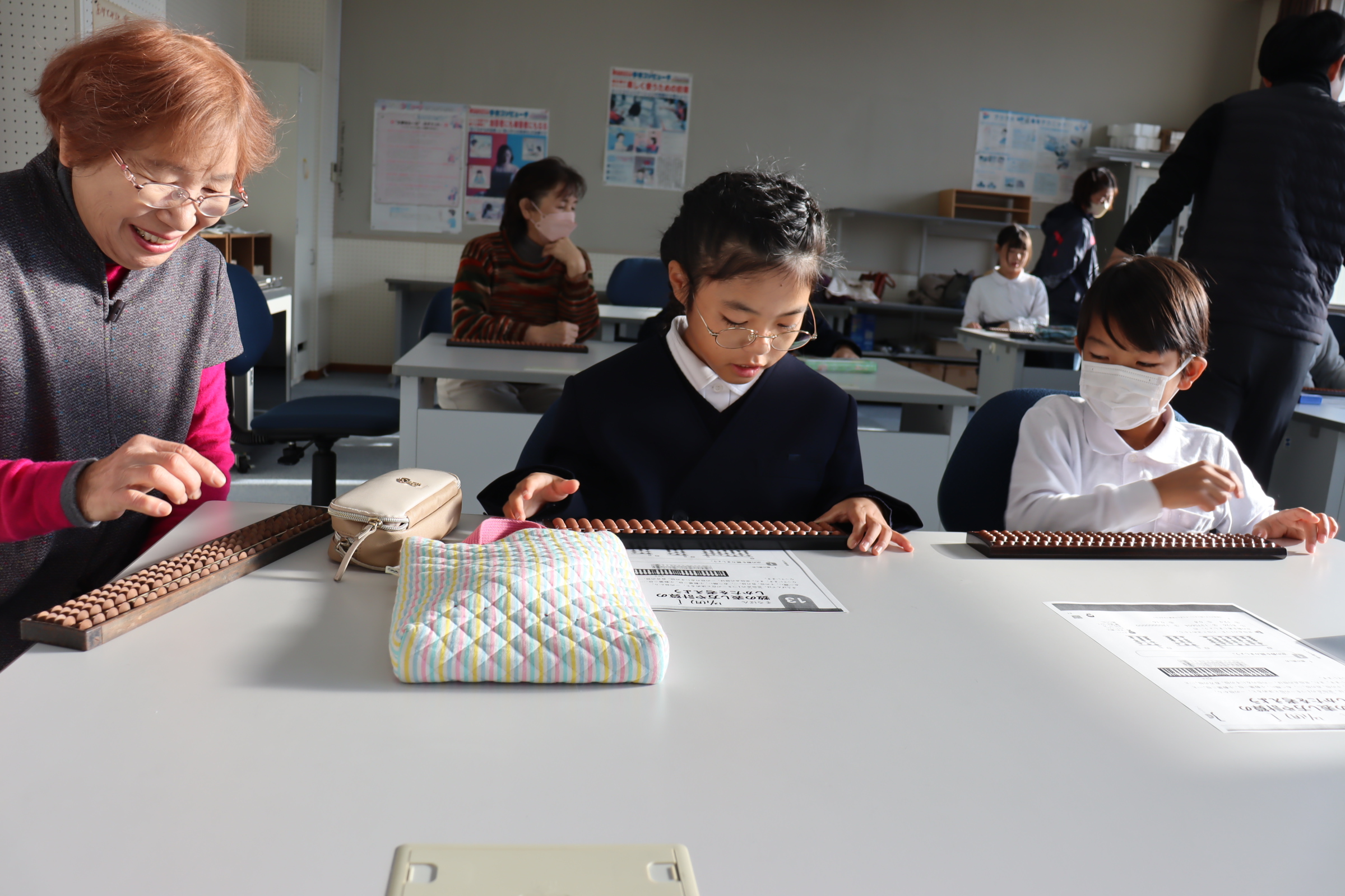 12/1(月)そろばん教室(中学年) 2025.12.01 小野小ニュース Tweet この記事のタイトルとURLをコピーする 12/1(月)そろばん教室(中学年) 地域の皆様にご協力いただき中学年のそろばん教室を実施しました。そろばんに触れる機会がだんだん少なくなりましたが、江戸期の数学世界一を支えていた日本の文化を学ぶ機会が算数に位置づけられています。珠をはじく指や順番など、慣れるまで少し時間がかかるのですが、地域の皆様に丁寧に教えていただき、子どもたちも安心して学習することができました。学習の後は、児童が考えたゲームなどで一緒に交流しました。今日も笑顔あふれるふれあい活動になりました。 Tweet この記事のタイトルとURLをコピーする 11/26(水)人権教室(低学年) 前の記事