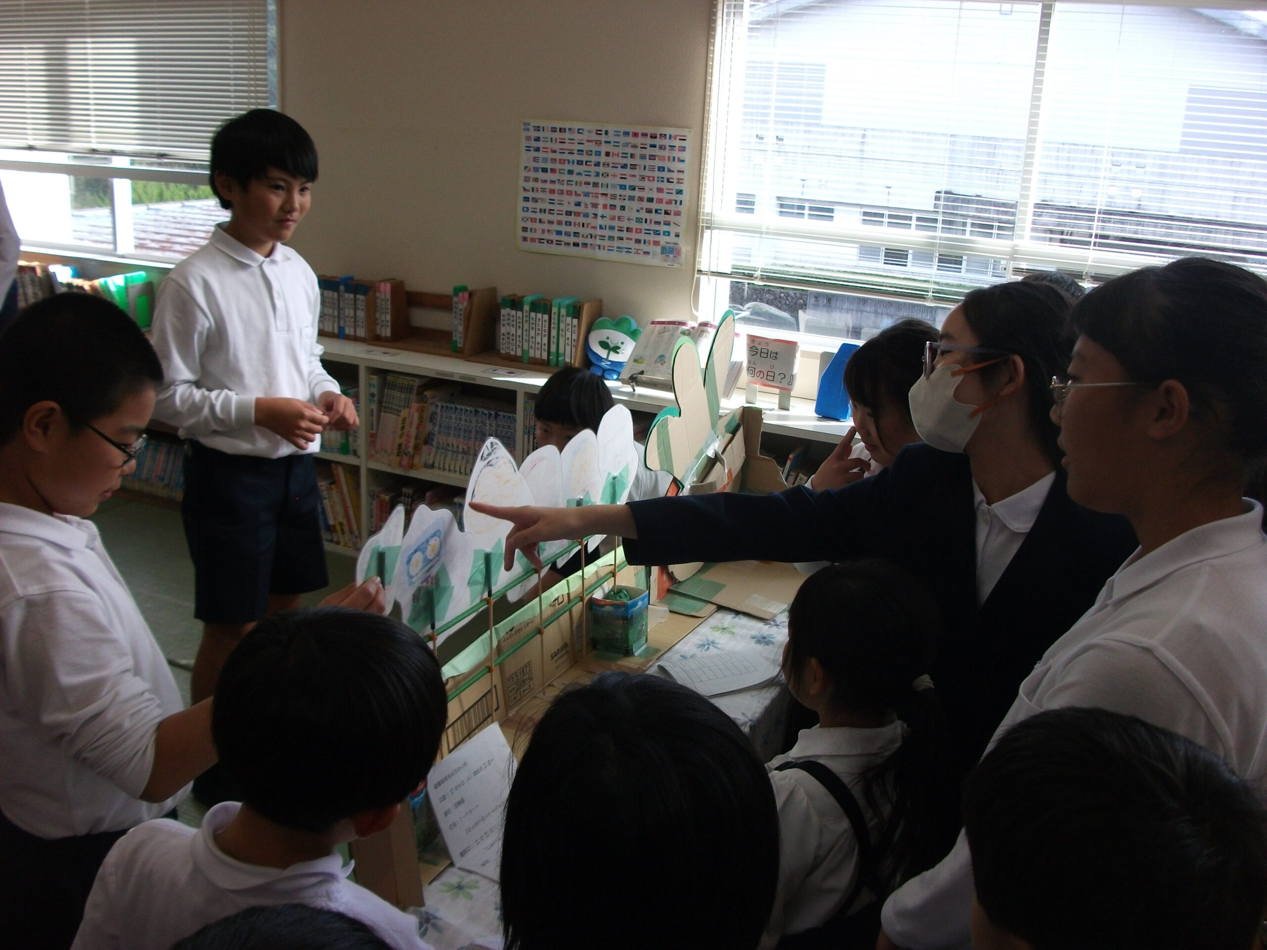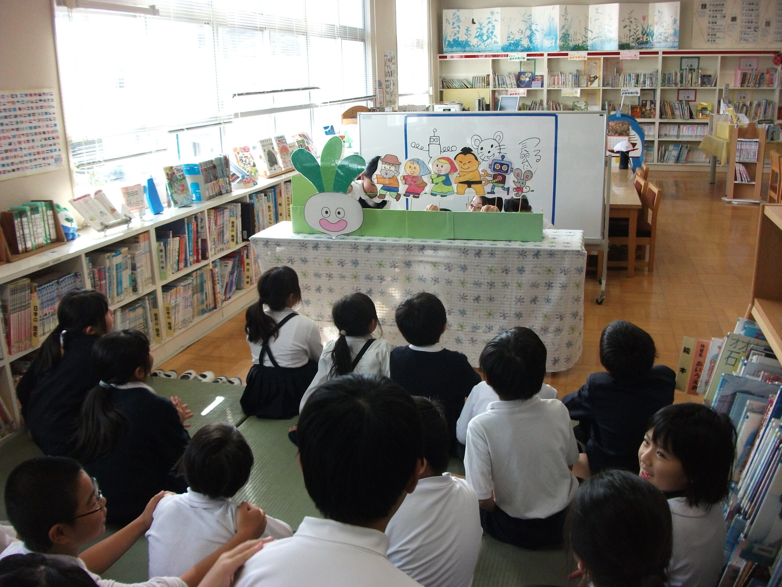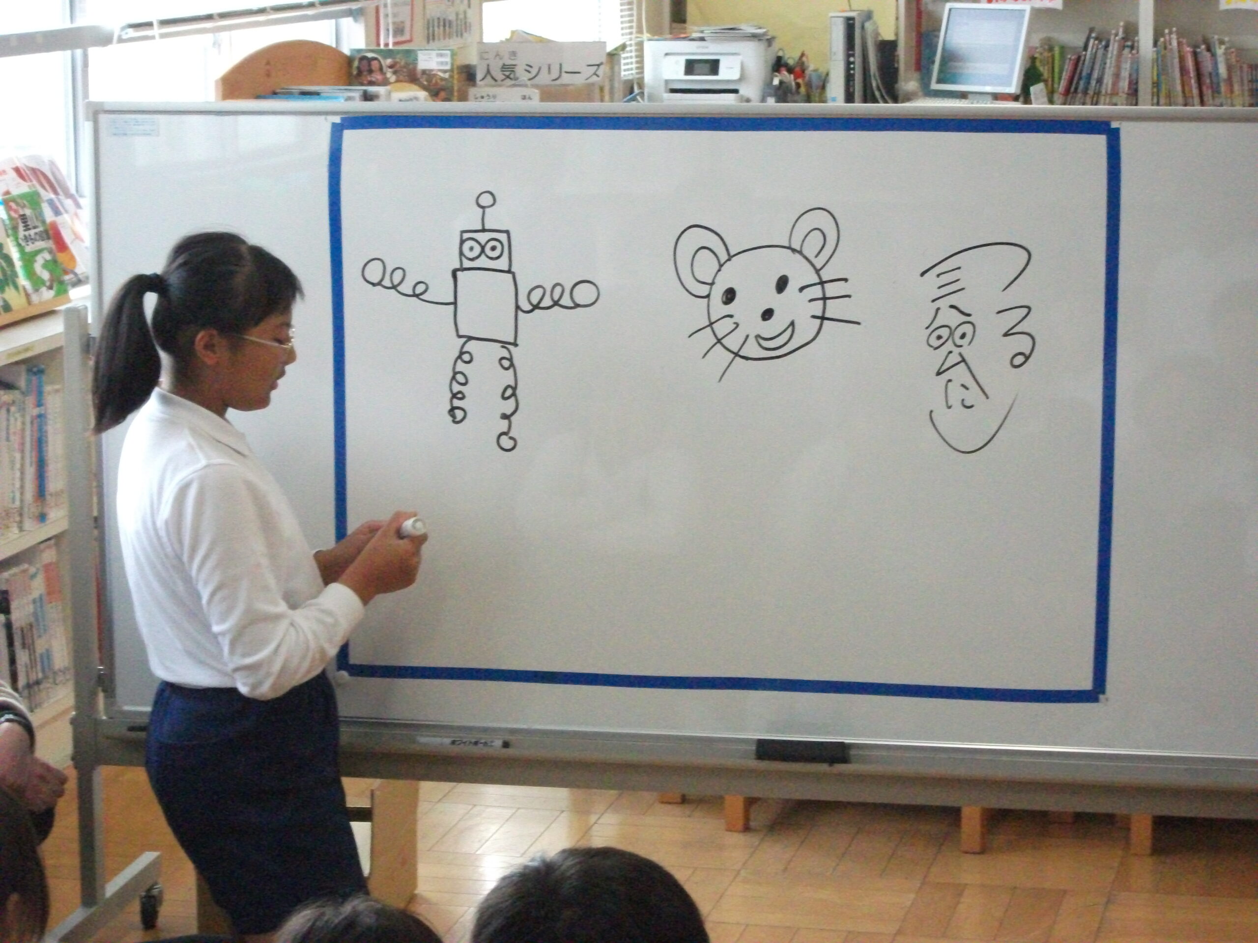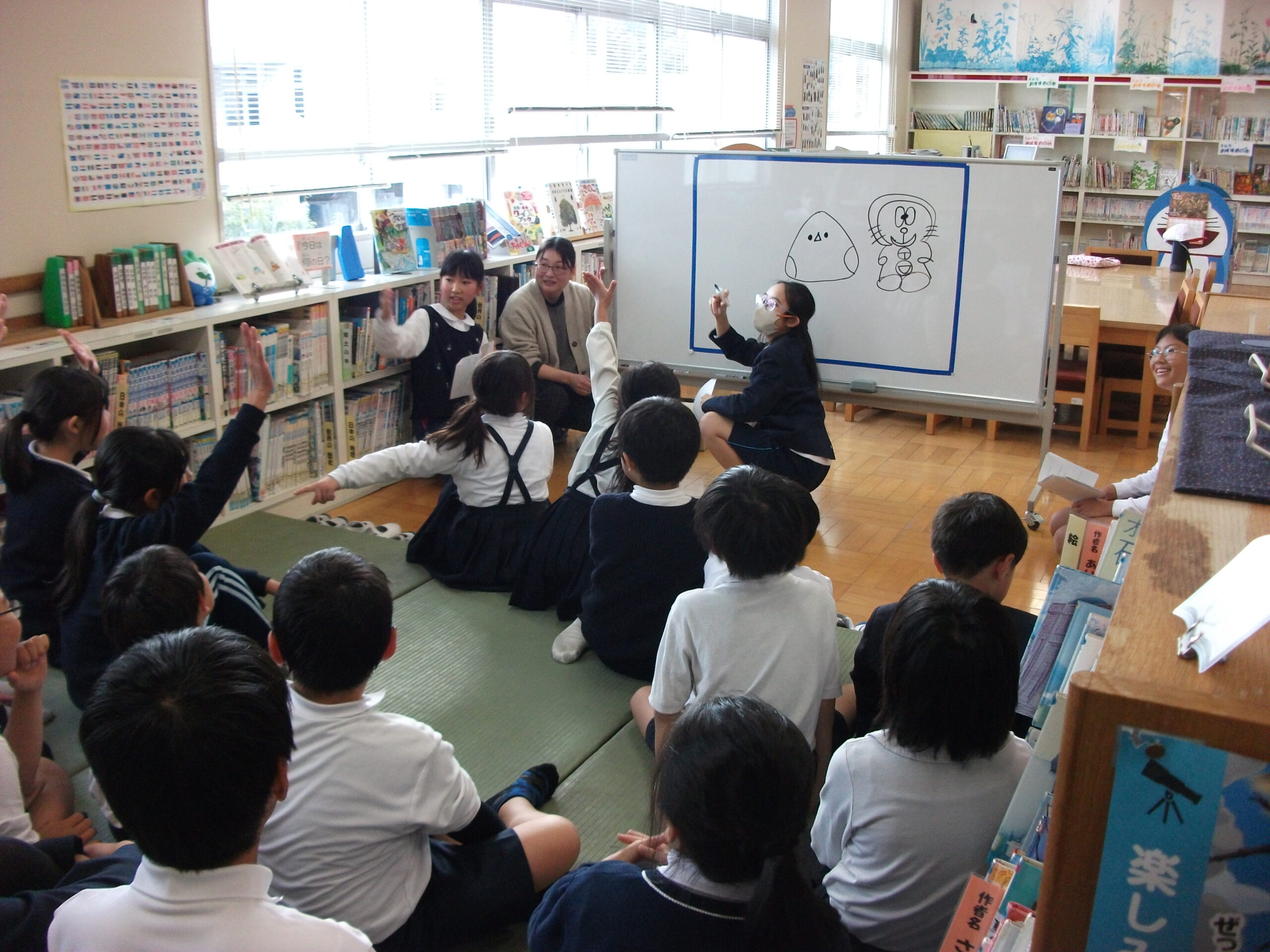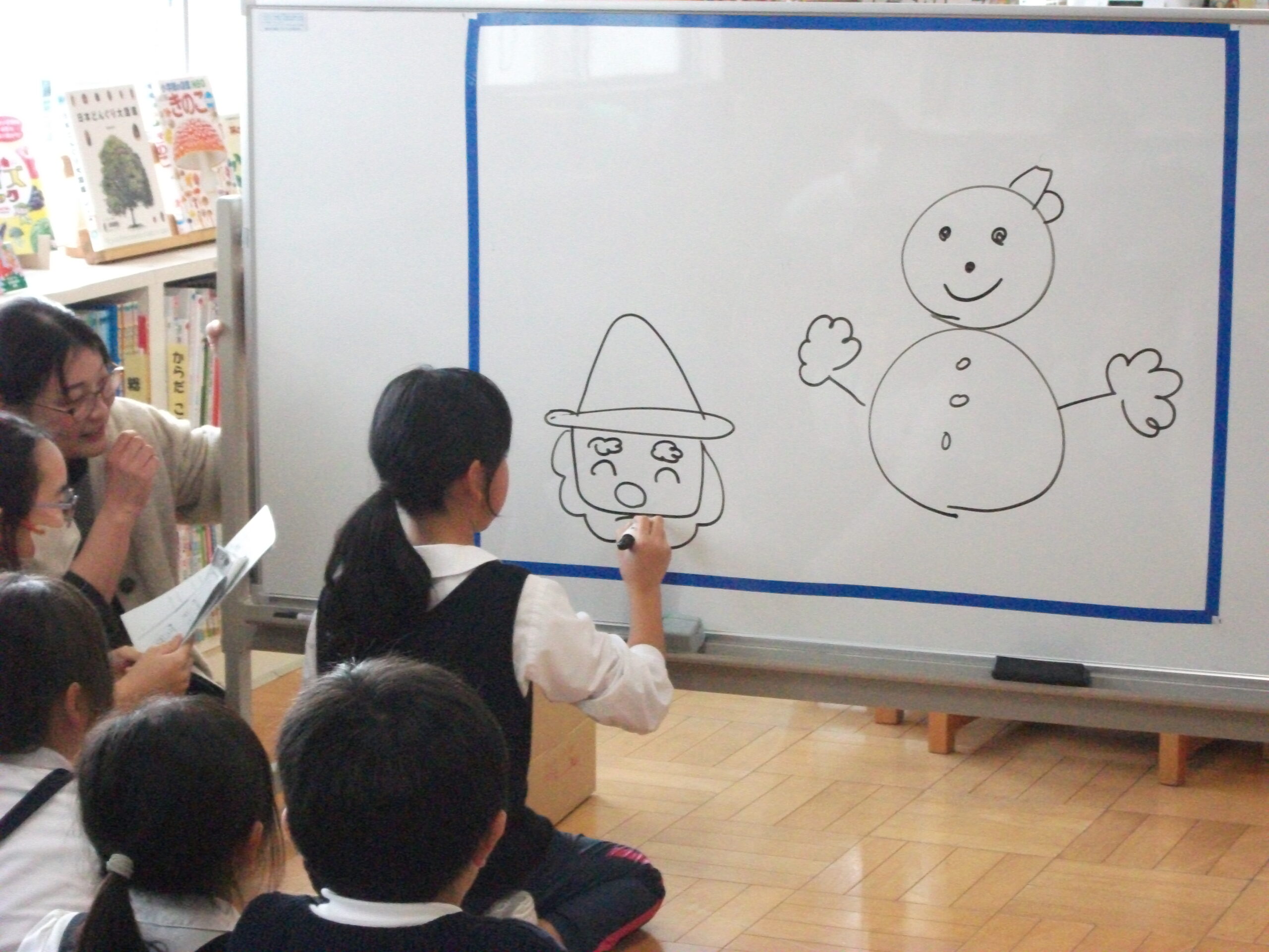 12/9(火)お話し会(整備委員会) 2025.12.09 小野小ニュース Tweet この記事のタイトルとURLをコピーする 12/9(火)お話し会(整備委員会) 整備委員会がお話し会をしてくれました。まずは、委員の3人から絵描き歌クイズ。その後、絵描き歌などの本を紹介しました。そして、「おおきなかぶ」をオマージュした話をペープサートで演じてくれました。絵描き歌で紹介したキャラクターを登場させるなど、全体のつながりも意識した発表でした。動くキャラクターたちの構造に興味津々の児童は、終了後集まって、感動していました。今日も、表現力を発揮してくれました。 Tweet この記事のタイトルとURLをコピーする 12/3(水)持久走大会 前の記事 12/10(水)子どもと大人の人権学習会 次の記事