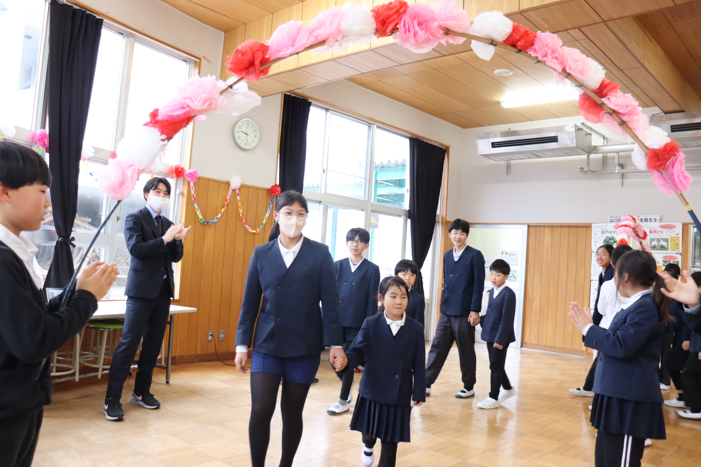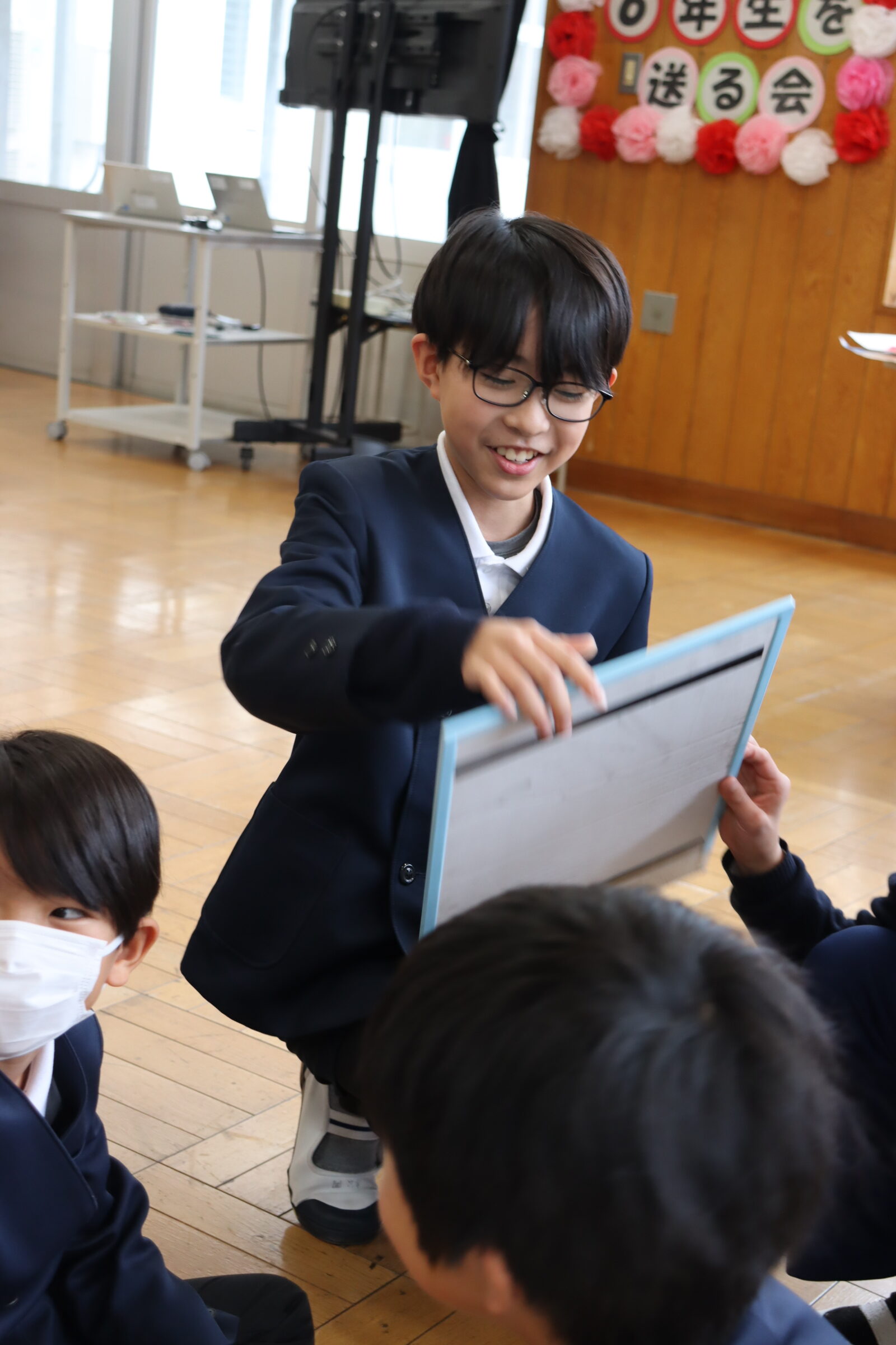 2/25(水)6年生を送る会 2026.02.26 小野小ニュース Tweet この記事のタイトルとURLをコピーする 2/25(水)6年生を送る会 久しぶりに全校児童が勢揃い。6年生を送る会が全員でできたことに感謝です。3、4年生が中心となって企画運営をしてくれました。5年生もしっかりとサポートしてさすがでした。会は、ほのぼのと、暖かい空気の中楽しく進行しましたが、子どもたちのピュアな姿に涙腺が緩んでしまいました。事後の感想の中にも「楽しかったけど、さびしい」「なみだをがまんした」などの言葉がいくつも見られました。残り時間は少なくなってきましたが、よい時間になるようにしていきたいと強く思いました。 Tweet この記事のタイトルとURLをコピーする 2/24(火)6年生を送る会 前日準備 前の記事 2/26(木)コサージュ作り(5年) 次の記事